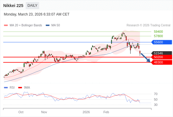 Nikkei 225 短线: 下跌趋势。