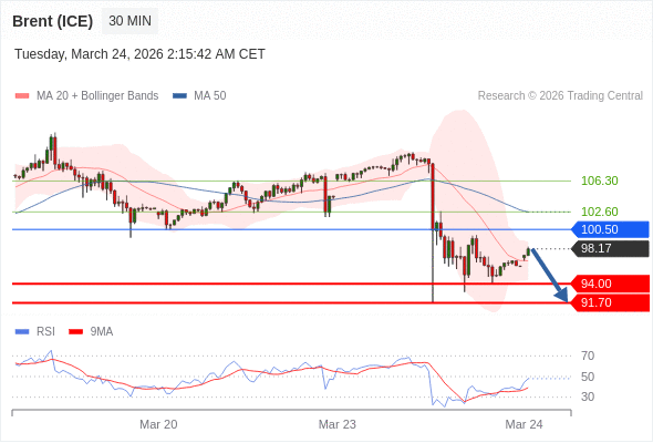 在 100.50 之下,看跌,目标价位为 94.00 ,然后为 91.70 。