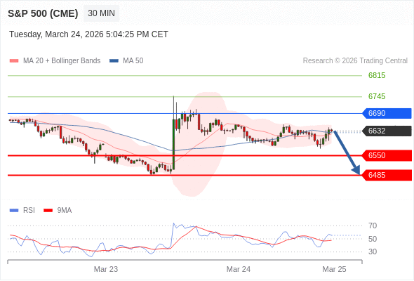在 6690 之下,看跌,目标价位为 6550 ,然后为 6485 。