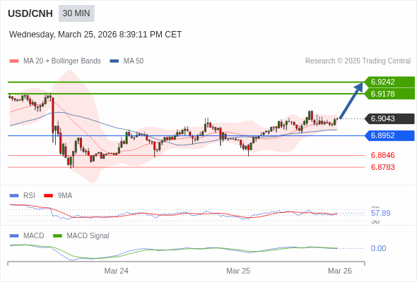 替代方案: 在6.8952以下,期待6.8846和6.8783。