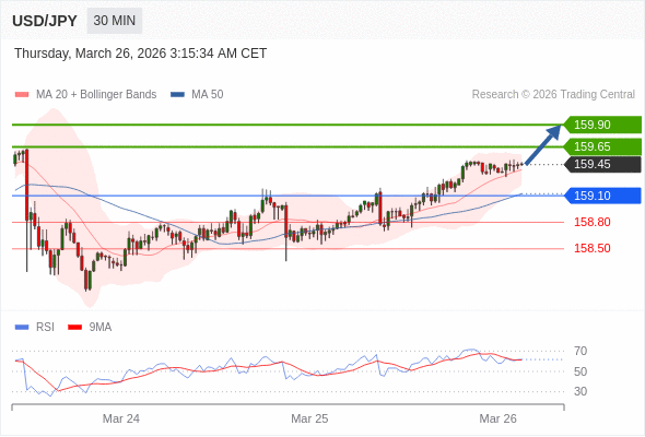 在 159.10 之上,看涨,目标价位为 159.65 ,然后为 159.90 。