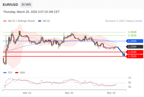 欧元/美元 当日内: 期待1.1540。
