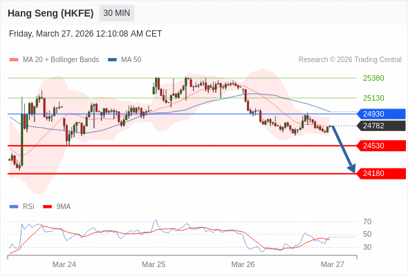 在 24930 之下,看跌,目标价位为 24530 ,然后为 24180 。