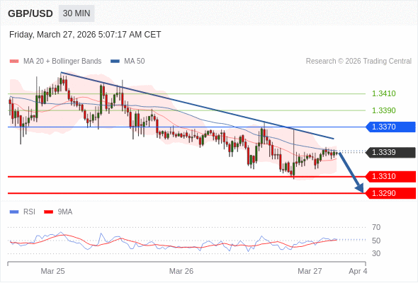 在 1.3370 之下,看跌,目标价位为 1.3310 ,然后为 1.3290 。