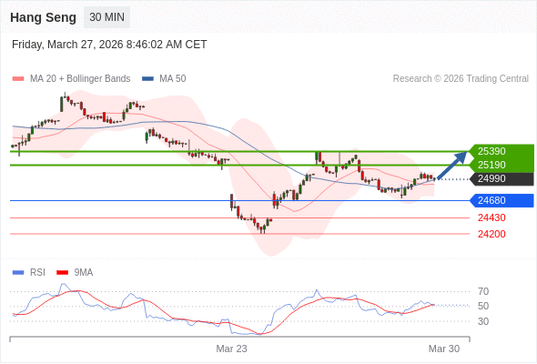 在 24680 之上,看涨,目标价位为 25190 ,然后为 25390 。
