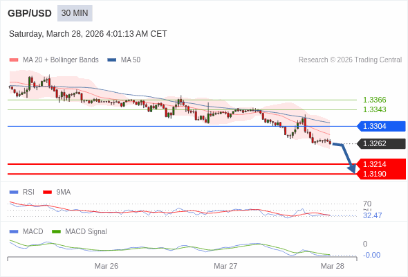 英镑/美元 当日内 : 看跌,在 1.3304 之下。