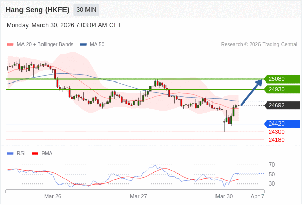 在 24420 之上,看涨,目标价位为 24930 ,然后为 25080 。