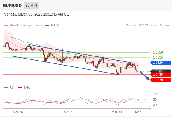 交易策略: 在 1.1520 之下,看跌,目标价位为 1.1485 ,然后为 1.1470 。