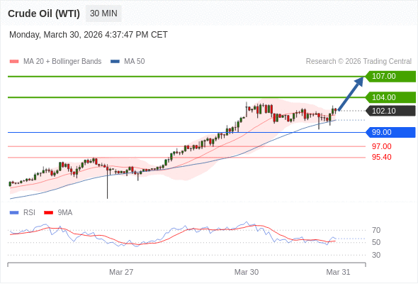 交易策略: 在 99.00 之上,看涨,目标价位为 104.00 ,然后为 107.00 。