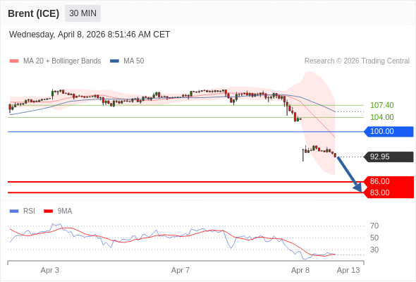 交易策略: 在 100.00 之下,看跌,目标价位为 86.00 ,然后为 83.00 。