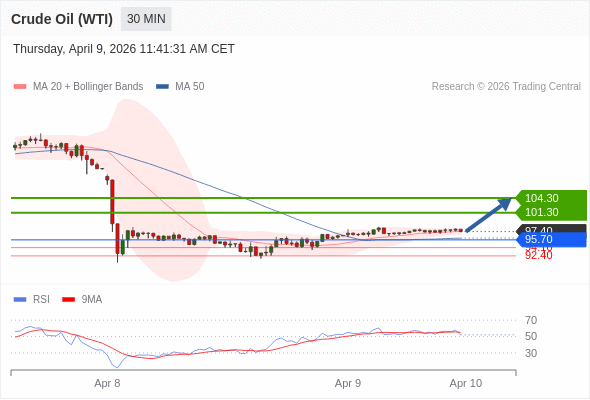 在 95.70 之上,看涨,目标价位为 101.30 ,然后为 104.30 。