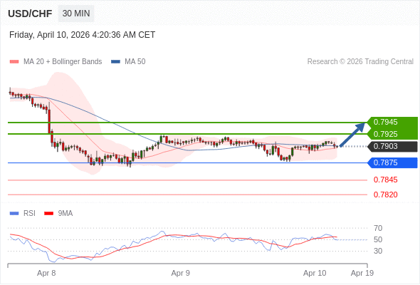 在 0.7875 之上,看涨,目标价位为 0.7925 ,然后为 0.7945 。
