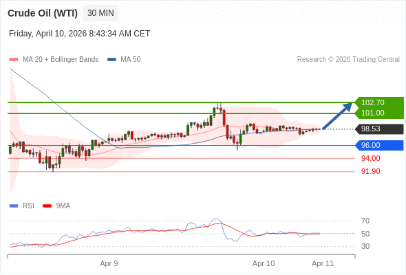 在 96.00 之上,看涨,目标价位为 101.00 ,然后为 102.70 。