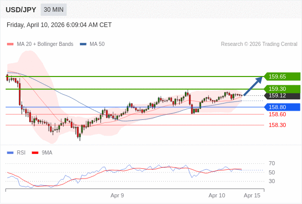 在 158.80 之上,看涨,目标价位为 159.30 ,然后为 159.65 。