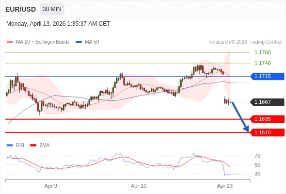 交易策略: 在 1.1715 之下,看跌,目标价位为 1.1635 ,然后为 1.1610 。