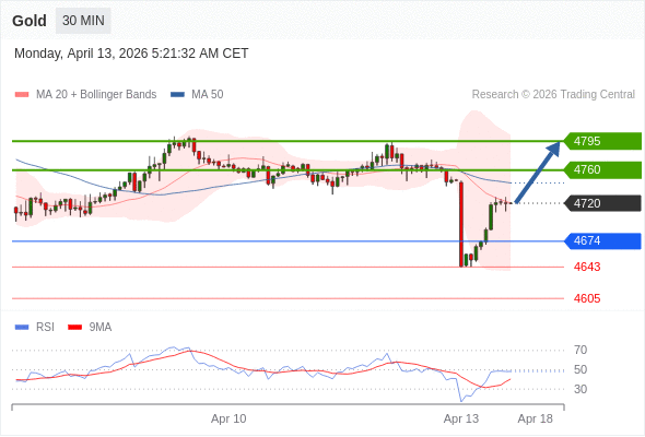 在 4674 之上,看涨,目标价位为 4760 ,然后为 4795 。