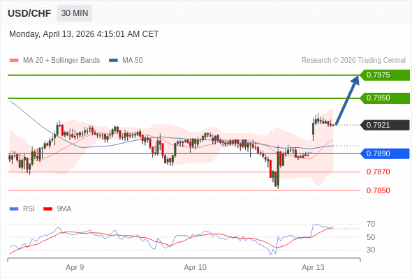 在 0.7890 之上,看涨,目标价位为 0.7950 ,然后为 0.7975 。