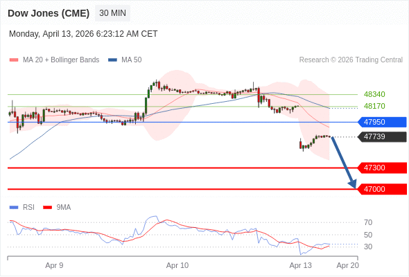 在 47950 之下,看跌,目标价位为 47300 ,然后为 47000 。