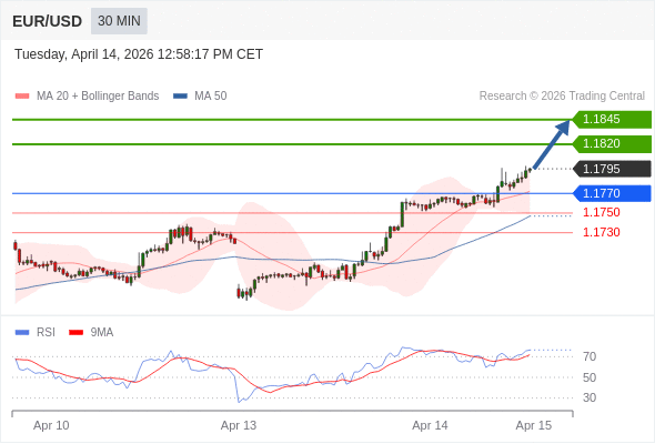 在 1.1770 之上,看涨,目标价位为 1.1820 ,然后为 1.1845 。