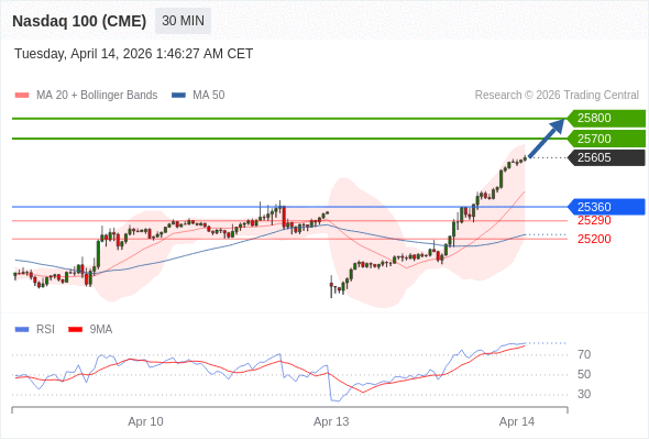 在 25360 之上,看涨,目标价位为 25700 ,然后为 25800 。