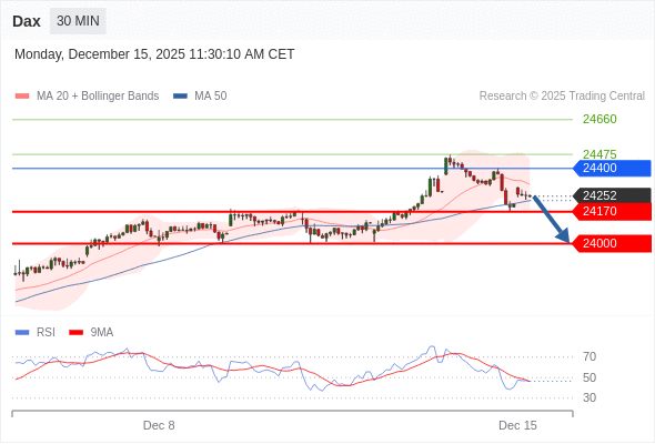 在 24400 之下,看跌,目标价位为 24170 ,然后为 24000 。