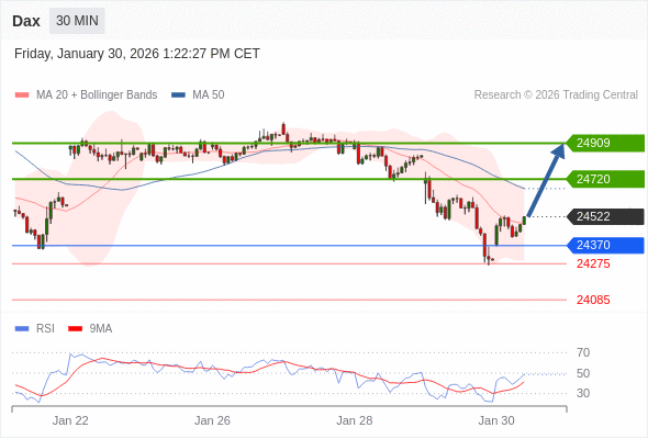 在 24370 之上,看涨,目标价位为 24720 ,然后为 24909 。