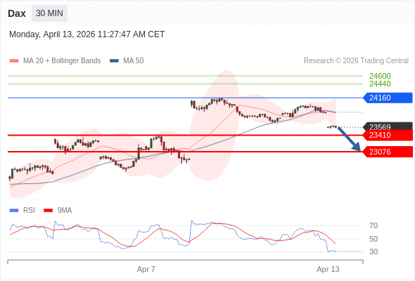 在 24160 之下,看跌,目标价位为 23410 ,然后为 23076 。