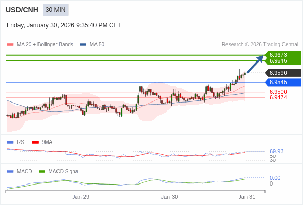 替代方案: 在6.9545以下,期待6.9500和6.9474。