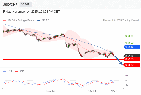 在 0.7945 之下,看跌,目标价位为 0.7900 ,然后为 0.7880 。