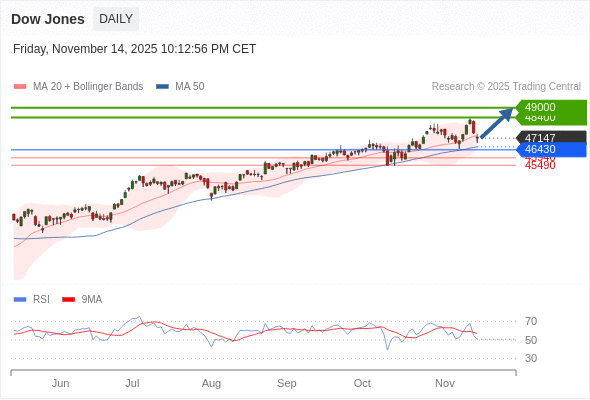 在 46430 之上,看涨,目标价位为 48400 ,然后为 49000 。