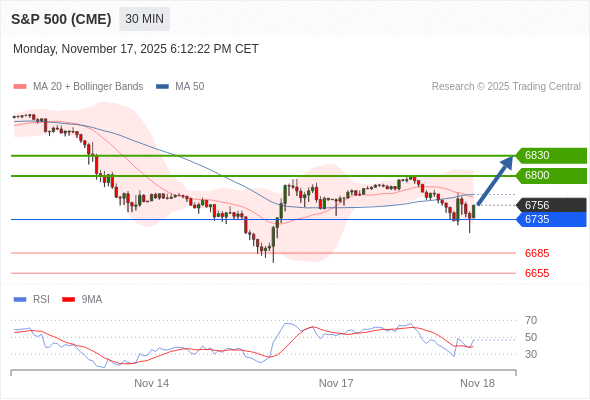 在 6735 之上,看涨,目标价位为 6800 ,然后为 6830 。