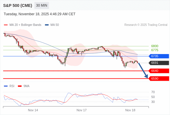 在 6735 之下,看跌,目标价位为 6640 ,然后为 6590 。