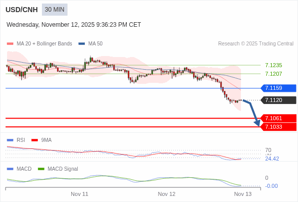 交易策略: 看跌,在 7.1159 之下。