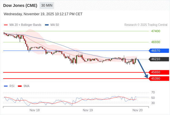在 46570 之下,看跌,目标价位为 45650 ,然后为 45390 。