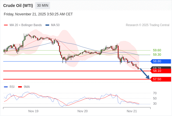 在 58.80 之下,看跌,目标价位为 58.10 ,然后为 57.50 。