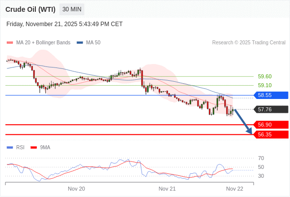 在 58.55 之下,看跌,目标价位为 56.90 ,然后为 56.10 。