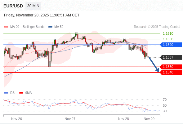 在 1.1590 之下,看跌,目标价位为 1.1550 ,然后为 1.1540 。