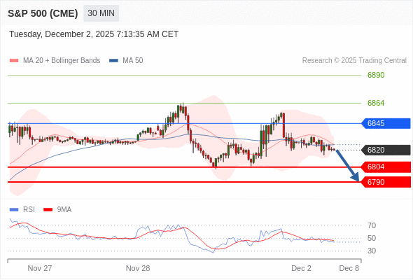 在 6845 之下,看跌,目标价位为 6804 ,然后为 6790 。