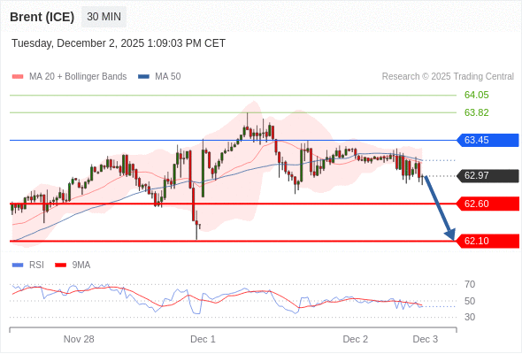 在 63.45 之下,看跌,目标价位为 62.60 ,然后为 62.10 。
