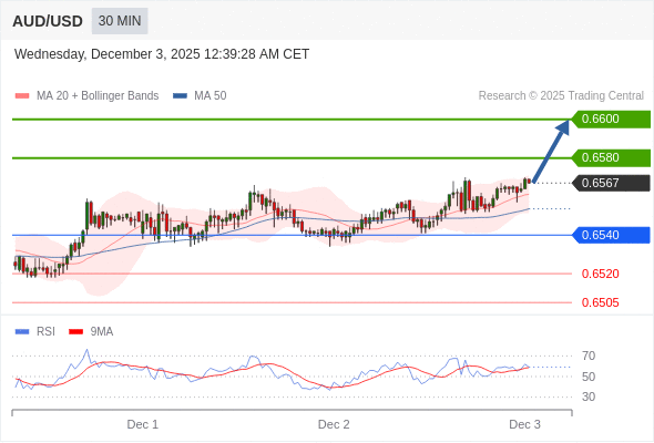 在 0.6540 之上,看涨,目标价位为 0.6580 ,然后为 0.6600 。