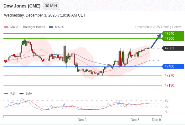 在 47400 之上,看涨,目标价位为 47800 ,然后为 47870 。