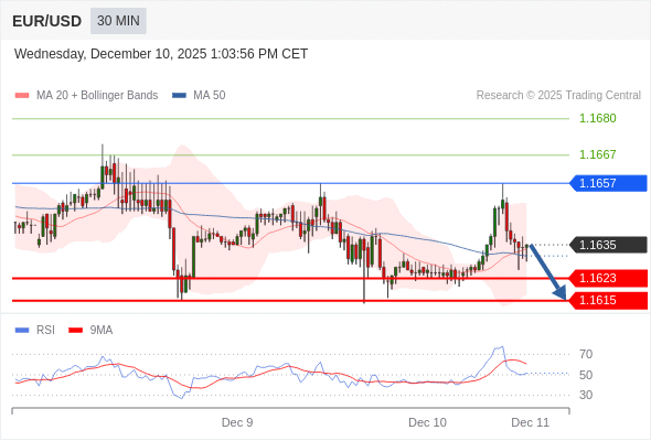 在 1.1657 之下,看跌,目标价位为 1.1623 ,然后为 1.1615 。