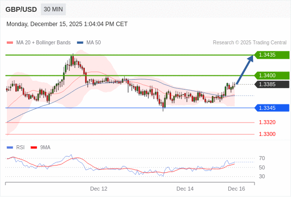 在 1.3345 之上,看涨,目标价位为 1.3400 ,然后为 1.3435 。