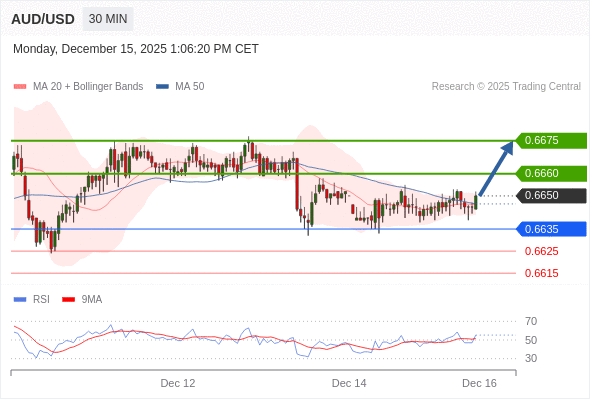 在 0.6635 之上,看涨,目标价位为 0.6660 ,然后为 0.6675 。