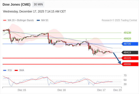 在 48730 之下,看跌,目标价位为 48220 ,然后为 48000 。