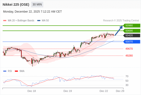 在 50070 之上,看涨,目标价位为 50690 ,然后为 50980 。
