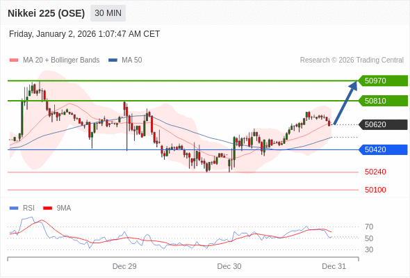 在 50420 之上,看涨,目标价位为 50810 ,然后为 50970 。