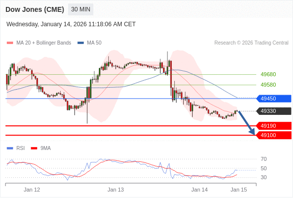 在 49450 之下,看跌,目标价位为 49190 ,然后为 49100 。