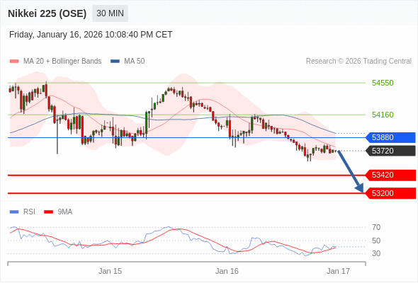 在 53880 之下,看跌,目标价位为 53420 ,然后为 53200 。