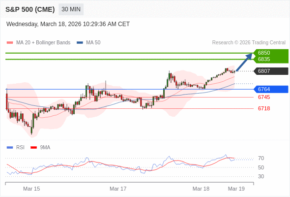在 6764 之上,看涨,目标价位为 6835 ,然后为 6850 。